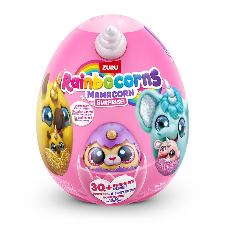 Rainboville has a new mom! Meet Rainbocorns Mamacorn Surprise, a magical new addition to the Rainbocorns family! Hatch the colorful egg and uncover over 30 exciting surprises. Inside, you’ll find one of seven adorable Mamacorn plushes, along with a mystery baby to discover. Which one will you hatch? The excitement awaits! Crack open the egg to meet your new favorite plush, Mamacorn! Each Rainbocorns Mamacorn Surprise is filled with charm and ready to bring magic to your collection. Uncover a mystery baby Rainbocorn and add even more enchantment to your world. With over 30 surprises inside, including fun accessories, mini surprises, and a magic heart to reveal, Mamacorn is sure to delight. Collect all 7 Mamacorns to expand your magical realm and discover the magic of Rainboville!