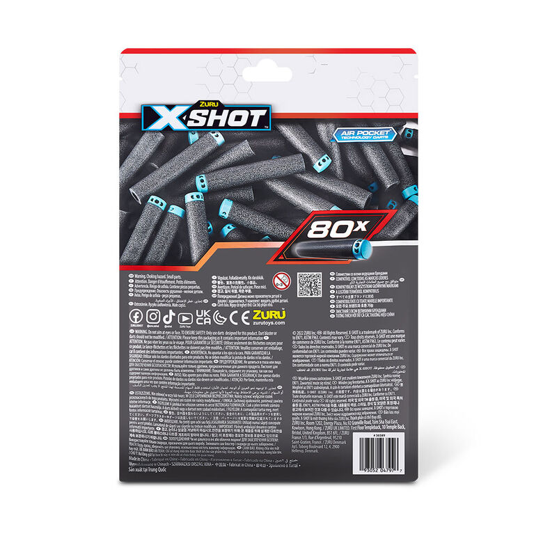 ever lose out on the action with this 80 dart refill pack that comes in a resealable bag! X-Shot Air Pocket Technology Darts are designed for a further, faster, and more accurate blast and are compatible with most leading brands.