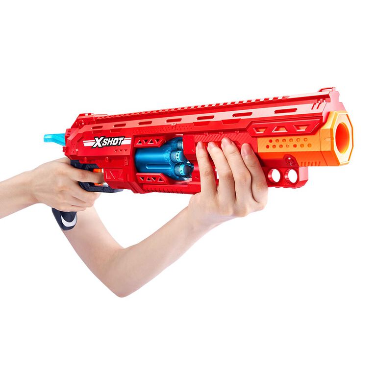 Calibrate your next move with the XSHOT Excel Caliber. Rapid-fire 6 darts in seconds using the rotating barrel, and with an additional 6 dart storage you’ll be loaded for battle. Set your sights on your target before firing your darts over 27m / 90 feet. The Caliber includes 16 Air Pocket Technology darts for a further, faster, and more accurate blast! Go next level and finish the battle before your opponents even begin!